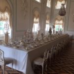 Nach einer kurzen Busfahrt staunen wir schon wieder. Wir erreichen ein ebenso prunkvolles Palais, wie wir sie heute morgen bestaunt haben. Nun wartet hier unser mehrgängiges Mittags Menü auf uns. Für Dieters Geburtstagsfeier ist das schon angemessen! Und so lässt er sich auch nicht lang bitten, sondern übernimmt für alle die Getränke! Vielen Dank, Dieter!!!