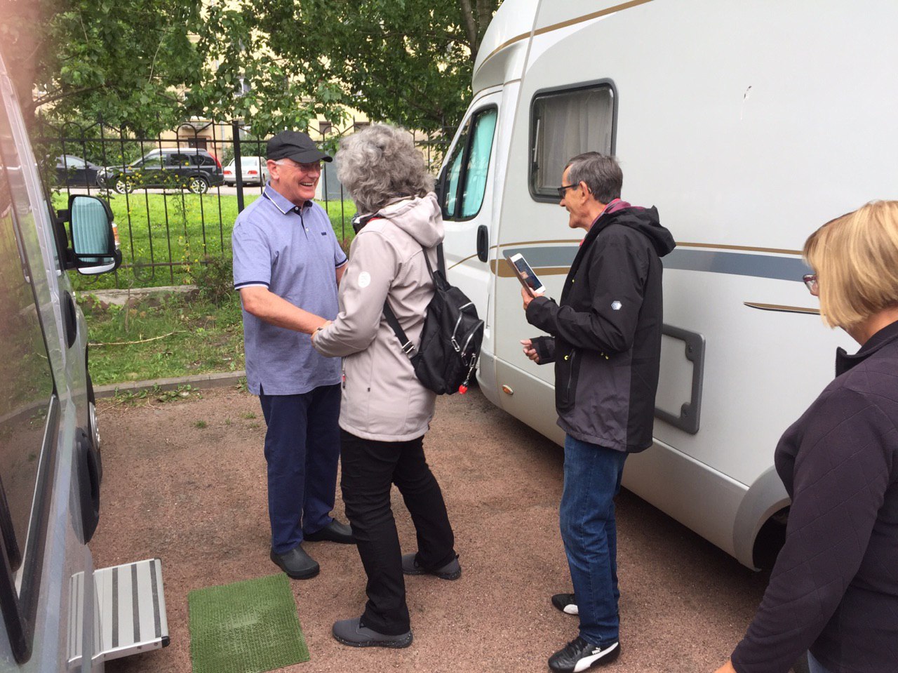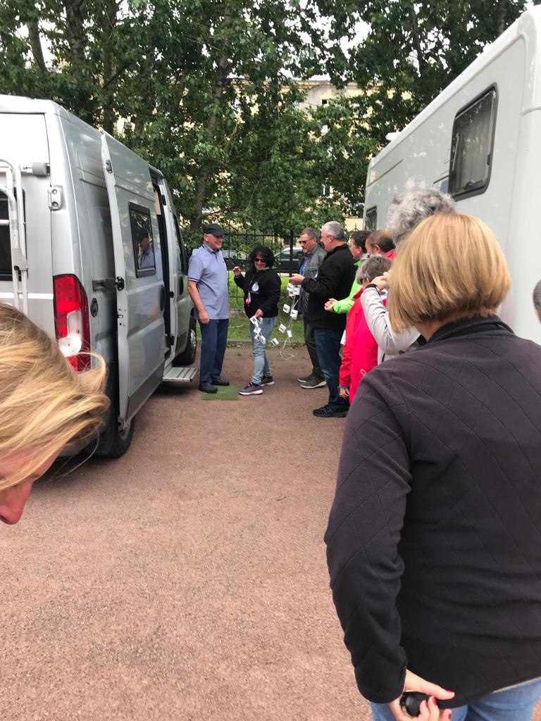 Anschließend geht’s zurück zum Hotel, unterwegs machen wir noch einen Stopp bei einem großen Supermarkt, in dem wir uns mit Lebensmitteln und Wodka eindecken. Dann ruhen wir uns im Sonnenschein bei unseren Wohnmobilen aus. Wir freuen uns auf morgen und auf einen freien Tag in St. Petersburg.