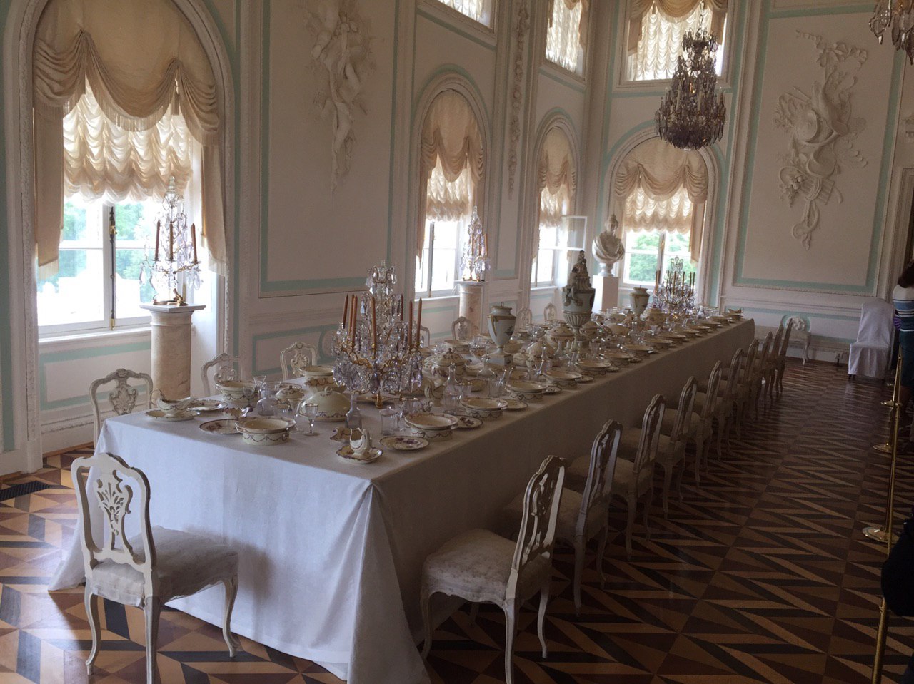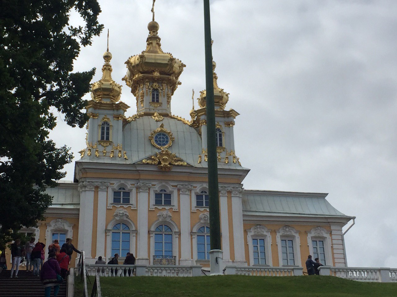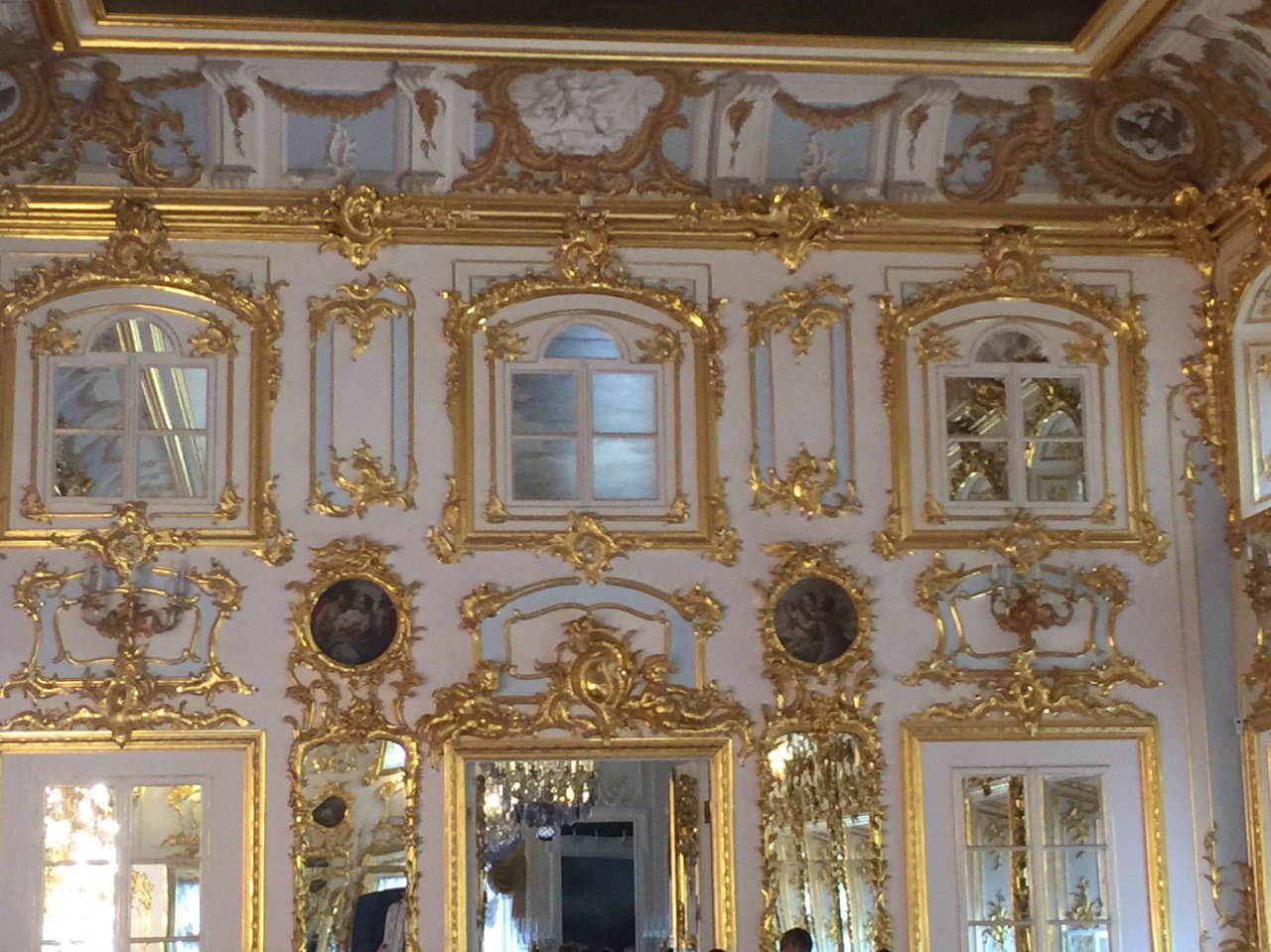 Dann beginnen wir unsere Besichtigung des Peters Palastes. Und ein weiteres Mal sind wir vom Prunk und der goldüberladenen Ausstattung dieses Palastes beeindruckt. Es ist recht entspannt. Unsere kleine Gruppe kann in Ruhe alle Räume betrachten und jeder bekommt seine Fotos. Es ist soviel zu sehen, dass wir am Ende fast nichts mehr aufnehmen können. So sind wir froh, dass es nun zum Mittagessen geht.