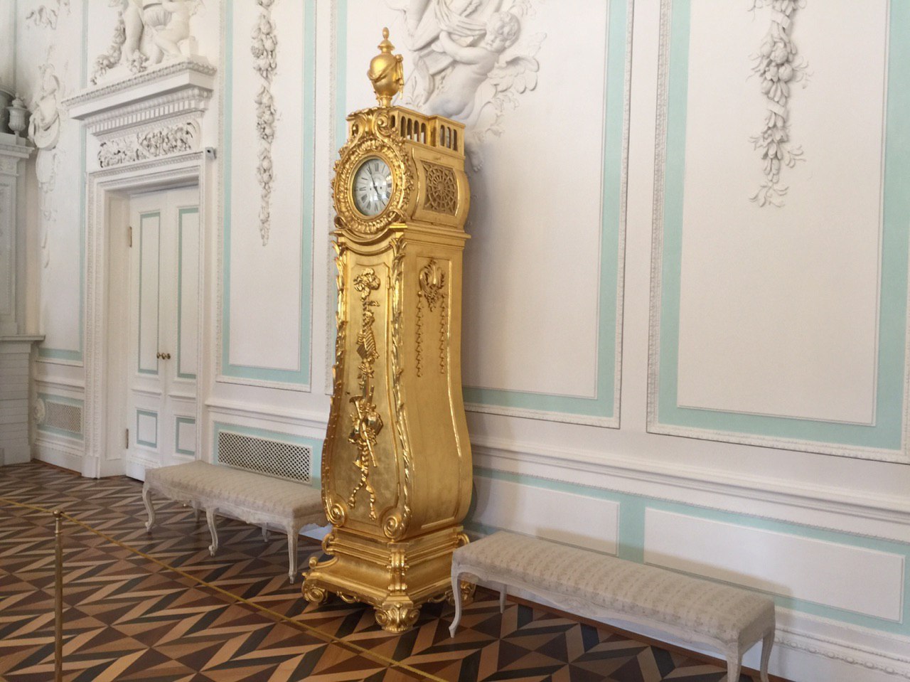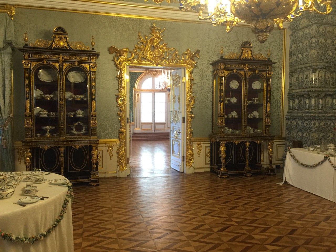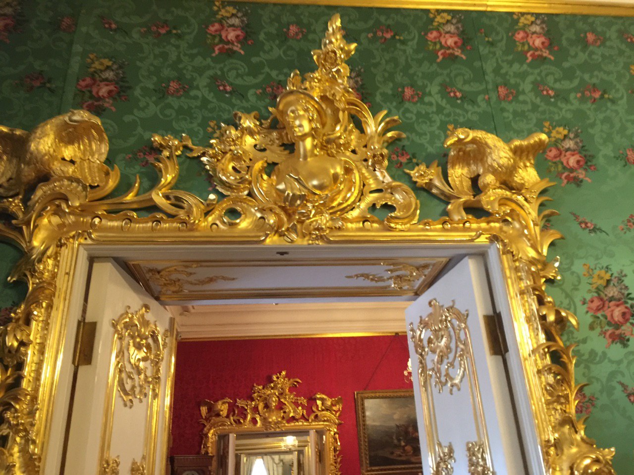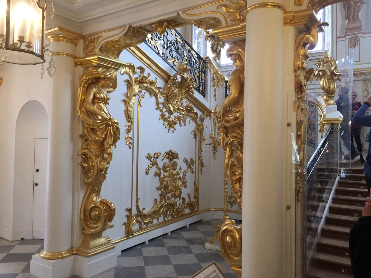 Dann beginnen wir unsere Besichtigung des Peters Palastes. Und ein weiteres Mal sind wir vom Prunk und der goldüberladenen Ausstattung dieses Palastes beeindruckt. Es ist recht entspannt. Unsere kleine Gruppe kann in Ruhe alle Räume betrachten und jeder bekommt seine Fotos. Es ist soviel zu sehen, dass wir am Ende fast nichts mehr aufnehmen können. So sind wir froh, dass es nun zum Mittagessen geht.