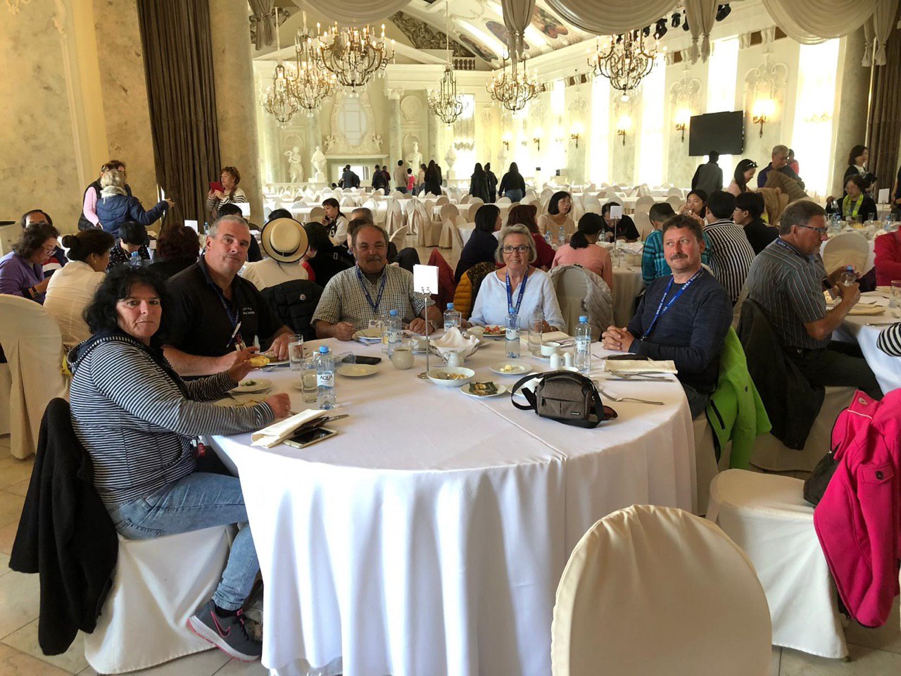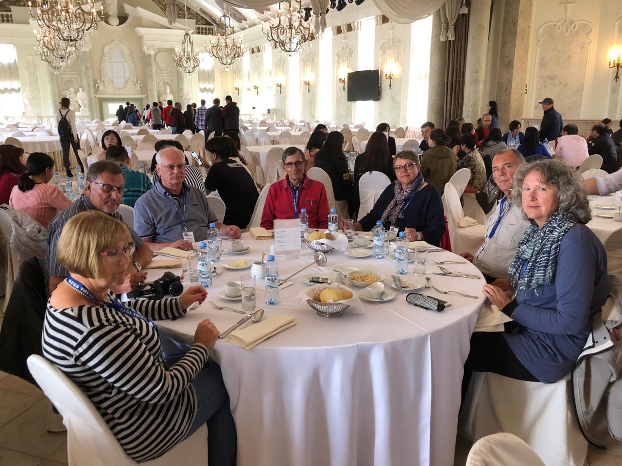 Nach einer kurzen Busfahrt staunen wir schon wieder. Wir erreichen ein ebenso prunkvolles Palais, wie wir sie heute morgen bestaunt haben. Nun wartet hier unser mehrgängiges Mittags Menü auf uns. Für Dieters Geburtstagsfeier ist das schon angemessen! Und so lässt er sich auch nicht lang bitten, sondern übernimmt für alle die Getränke! Vielen Dank, Dieter!!!