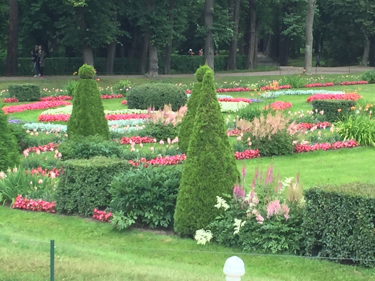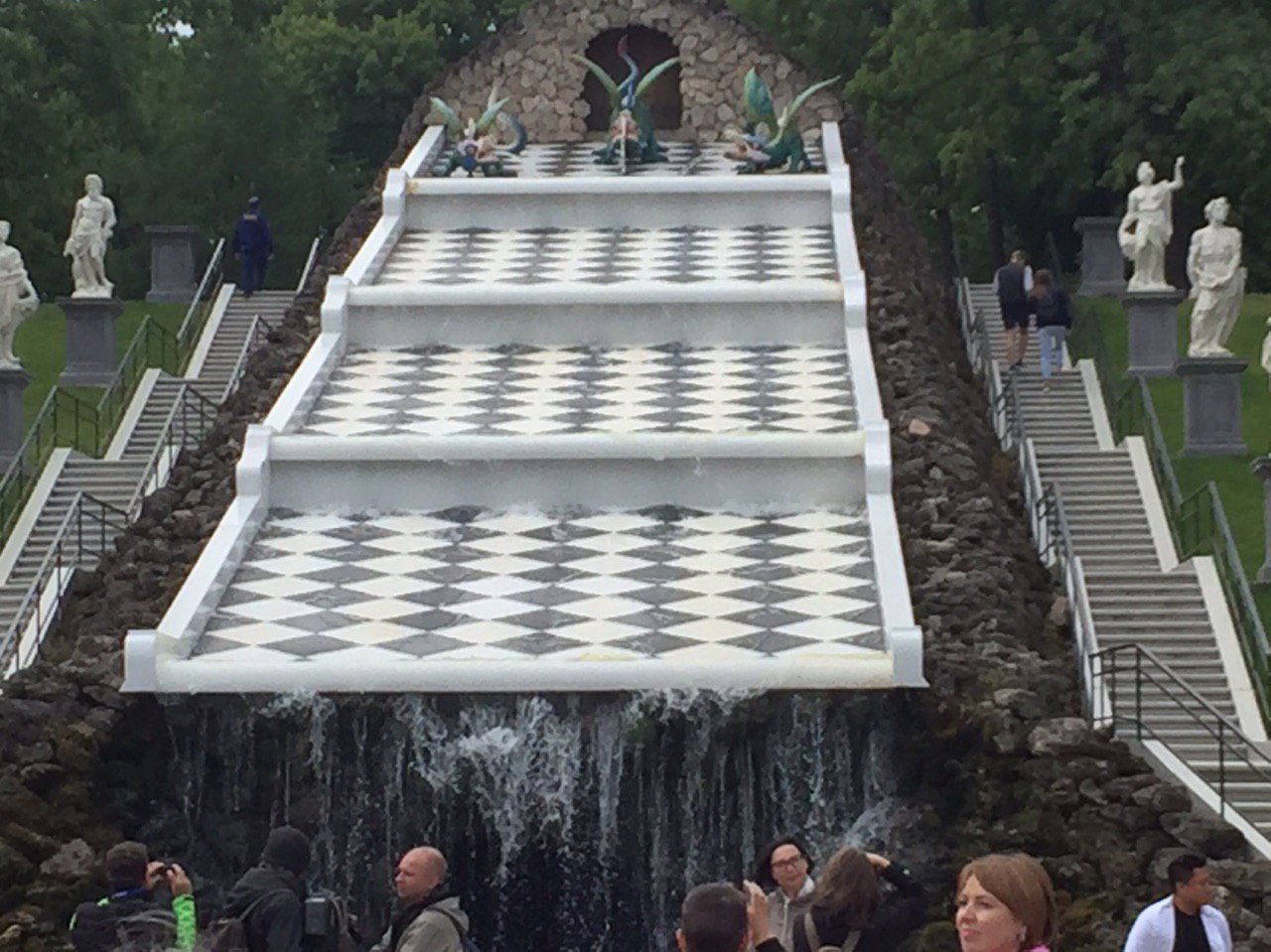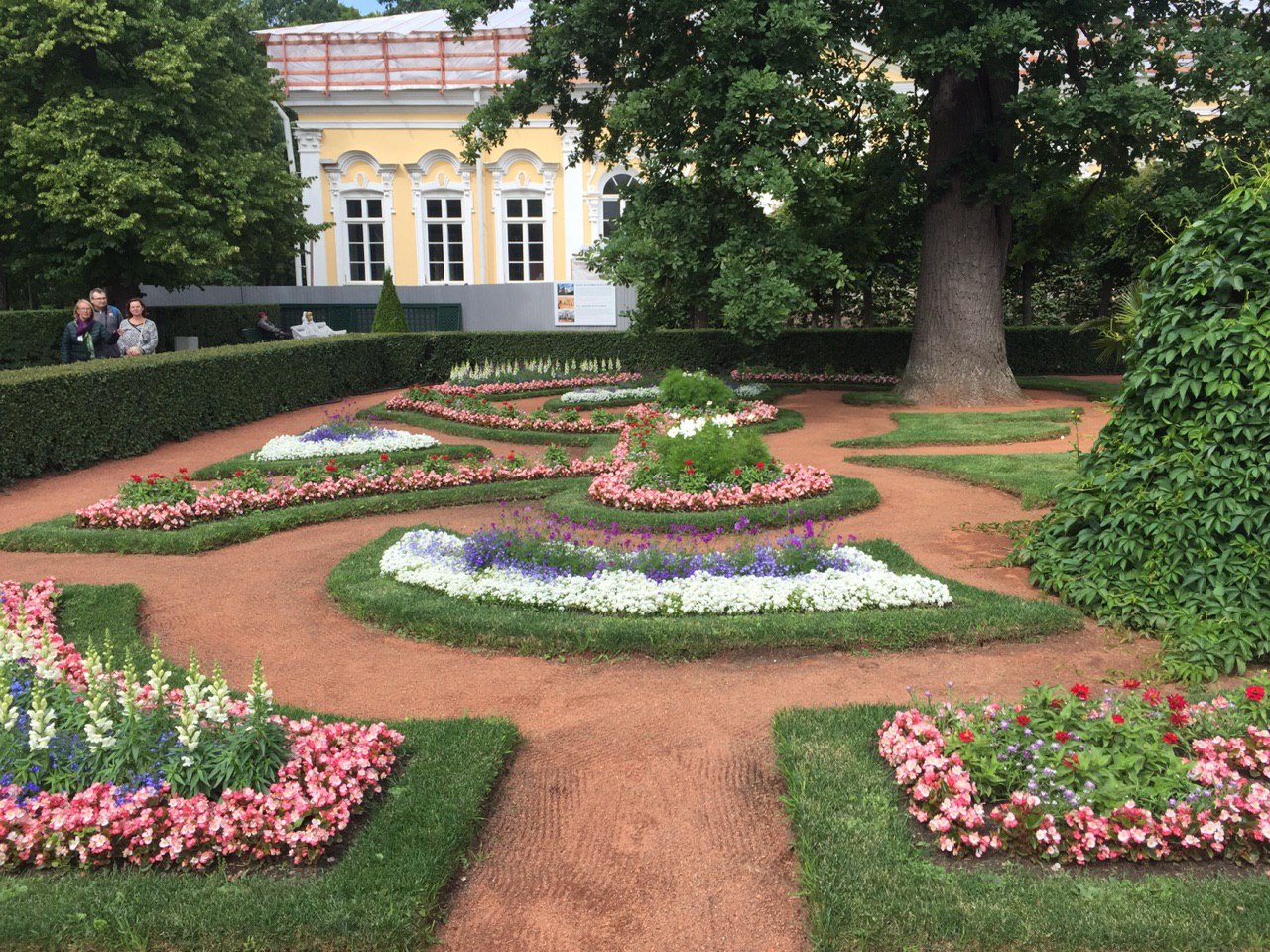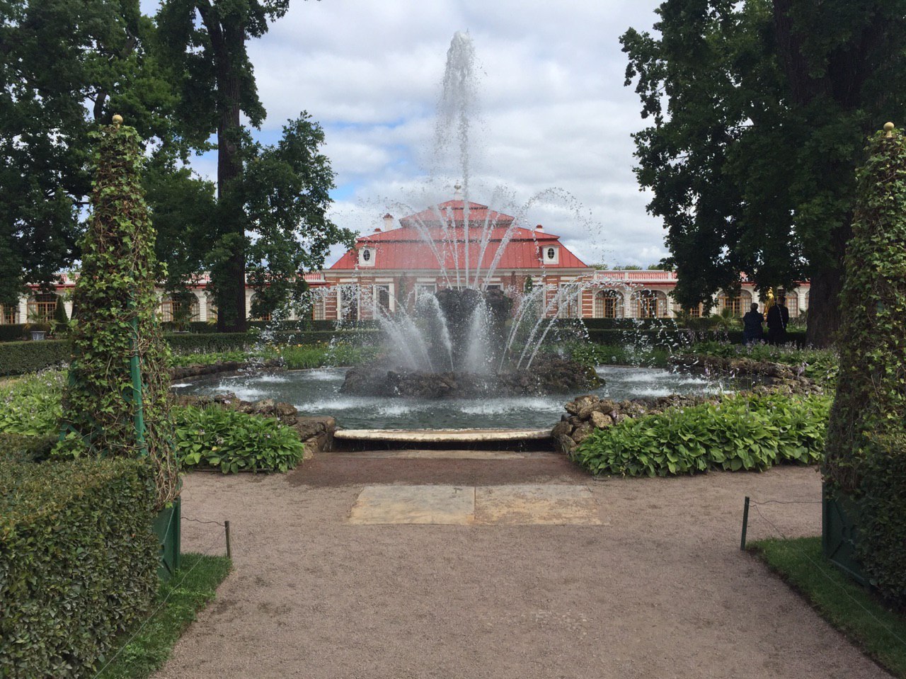 Gepflegte Beete und tausende blühende Blumen begeistern uns. Die vielen Palais erstrahlen in goldenem Glanz und die vielen Wasserkaskaden tanzen zur Musik.