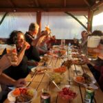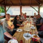 Am Abend wartet ein hervorragendes Fischmenue auf uns. Eine gute Vorsuppe macht den Start. Dazu ein guter Schnaps und Obstsaft. Wir lassen es uns gut gehen undreichern das Ganze mit Bier und Wein an.