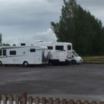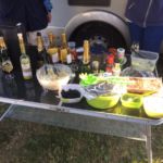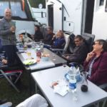 Recht spät erreichen wir unseren Campingplatz. Dieser ist ziemlich gut gefüllt und wir stellen uns eng zusammen. Das stellt sich als sehr hilfreich heraus. Trotzt unsere Wagenburg doch dem starken Wind. So können wir unser kleines, geplantes Grillfest inmitten unserer Wohnmobile ausrichten.