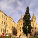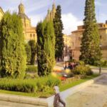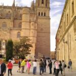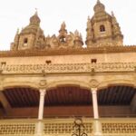 Das war die neue Kathedrale, jetzt kommt die alte. Salamanca hat zwei dieser Sorte, da das Königspaar Isabell und Ferdinand, genannt die „Katholischen Könige“ einst die alte Kirche für zu klein und zu dunkel für das schöne Salamanca befanden. Daneben finden wir die Universität.