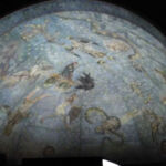 Wiederum über einen Innenhof kommen wir in einen Museumsraum, in dem früher ein Drittel der Ausbildung mit Abschluss “ Magister “ im Fach Astrologie praktiziert wurde. Im haldunklem Raum die Kuppel mit Sternbildern im Weltraum.