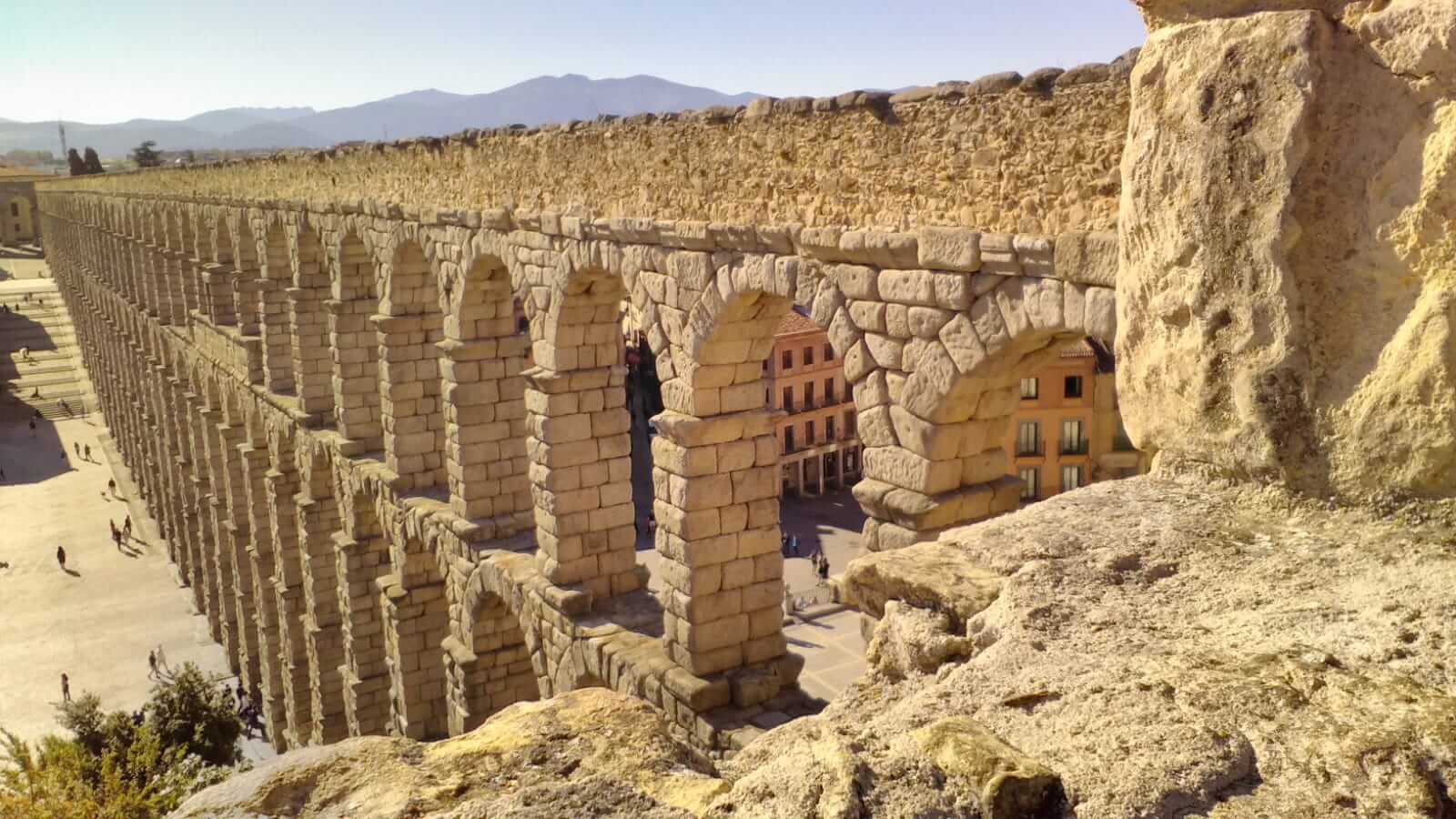 Der freie,Tag heute kann genutzt werden, um der Stadt Segovia einen Besuch abzustatten. Und das lohnt sich, denn in Segovia haben wir wieder eine der schönen Städte des mittleren Spaniens, eben des „Herzens“, vor uns! Mit dem Bus fahren wir für einen Euro hinein und landen direkt vor dem Wahrzeichen der Stadt, die auch zu den Unesco Welterbestätten gehört, nämlich dem gewaltigen Aquädukt.