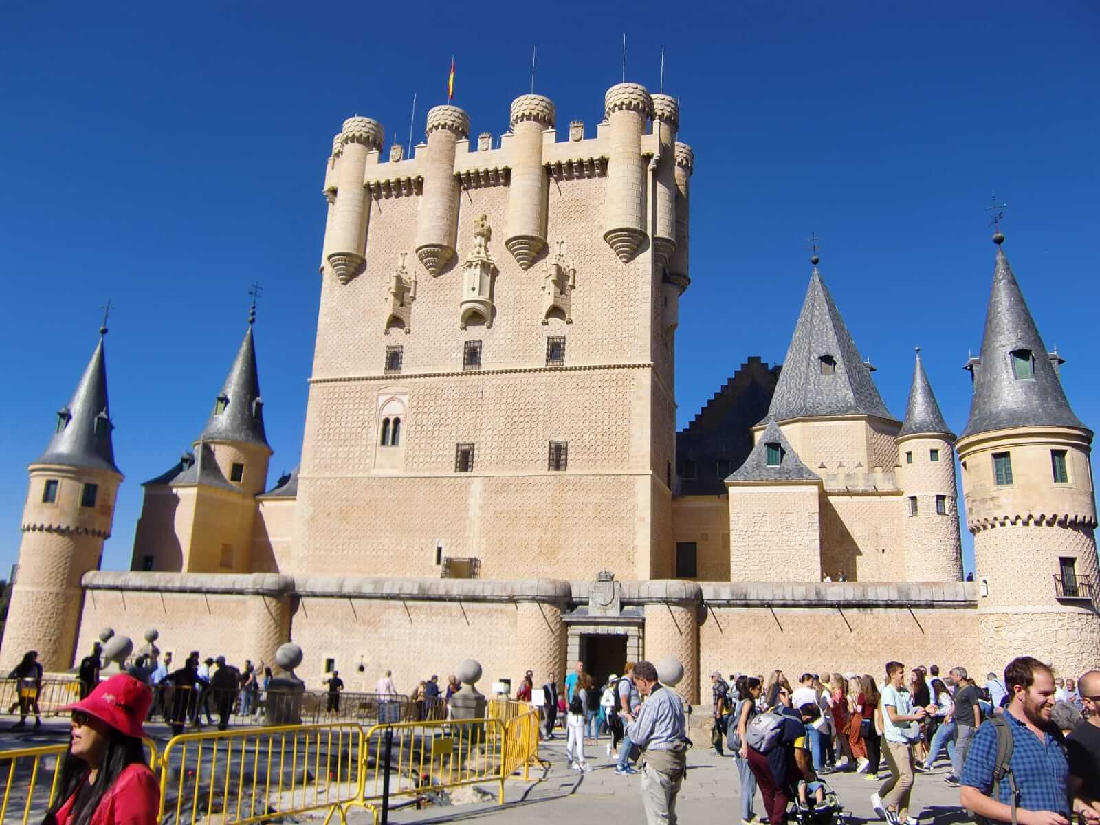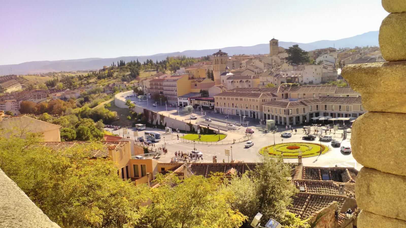 Nun haben wir das andere Ende der Altstadt erreicht und stehen vor dem Alcazar, ein Bauwerk, das wie ein Märchenschloss anmutet. Es ist eine seit der Römerzeit befestigte Burg (Alcazar bedeutet, aus dem Arabischen übersetzt „Burg“), die aber im 19.Jahrhundert durch ein Feuer total zerstört wurde. Heute sieht man eine gelungene Rekonstruktion. Da die gesamte Altstadt samt Alcazar auf einem Hügel liegt, hat man von hier einen phantastischen Blick auf die umgebende Landschaft mit ihren Feldern, Pinienwälder und auch Klöstern.