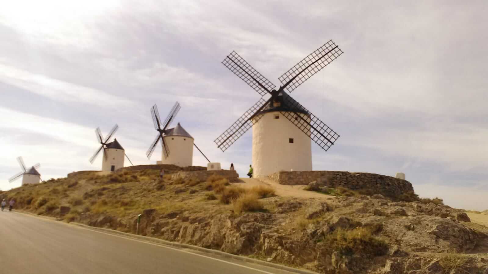 Heute kommen wir in die Region La Mancha. Hier ließ der bekannte spanische Schriftsteller seine Romanfigur Don Quijote gegen Windmühlenflügel kämpfen. Der skurrile Ritter glaubte feindliche Riesen vor sich zu haben. „Der Kampf gegen Windmühlenflügel“ wurde zum geflügelten Wort für Dinge oder Situationen, deren Lösung von vorneherein aussichtslos sind.