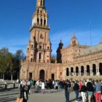 Wir wandern von einer berühmten Stätte zur anderen – und wir haben auch hier in dieser zauberhaften Stadt eine tolle Führerin! Erstes Ziel ist der Plaza Espana, ein wunderschöner Platz, erbaut für die Weltausstellung l-Exposicion Iberoamericana von 1929. Heute sind in den Gebäuden u. a. Büros eingerichtet. Es ist ein viel genutzter Tummelplatz.