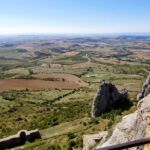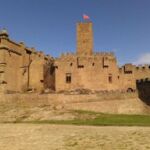 Mit Sonnenschein und guter Laune brechen wir auf zur Fahrt nach Pamplona. Die erste Sehenswürdigkeit erwartet uns. Wir fahren hinauf zur prächtigen Burg Castillo Loarre, die in etwa tausend Meter Höhe hoch über dem Tal thront. Und von hier aus haben wir auch eine tolle Aussicht in die Umgebung.