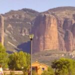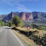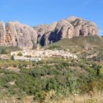Wir fahren durchs Pyrenäenvorland. Auf dem weiteren Weg kommen wir zu den „Mallos“, übersetzt „große Menschen“. Schon von weitem sehen wir die Felsen. Ein Stückchen weiter geht ein Abstecher nach Agüero, einem kleinen Grenzort, der sich dicht an die Felsformation schmiegt.