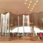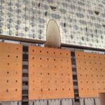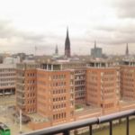 Die Elbphilharmonie, ein phantastisches Gebäude! Wir fahren auf einer langen, steilen Rolltreppe hinauf auf die Plaza und haben hier einen tollen Blick auf das riesige Hafenviertel St. Pauli, u. a. die schönen alten Speicherhäuser aus roten Backsteinen.