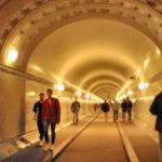 Mit der Rolltreppe fuhren wir hoch in die Elbphilharmonie, mit dem Fahrstuhl fahren wir hinunter in den alten Elbtunnel, der nur noch als Museum herhält.