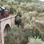 Am Morgen ging es mit dem Bus nach Ano Lechonia zum unteren Bahnhof der Schmalspurbahn. Ende des 19. Jahrhunderts begannen einige Eisenbahnpioniere den Pilion mit Volos, der aufsteigenden Hafenstadt im Pagasitischen Golf zu verbinden. Auf 600 Millimeter Spurbreite kann man Dank einiger Enthusiasten heute die Fahrt riskieren, die zu Beginn bis zur Mitte des 20. Jahrhunderts die wirtschaftliche Entwicklung des Pilion beschleunigte. Jetzt ist es eine Attraktion für die Touristen. Neben der Erfahrung, wie früher gereist wurde, ist die Streckenführung an den Hängen des Pilion teilweise atemberaubend. Der Zug ist nicht ganz pünktlich abgefahren und mit 45 Minuten Verspätung in Milies angekommen. Mit vier vollbesetzten Waggons hatte er aber auch viel zu ziehen. Dieses Dorf im Pilion bietet neben seiner traditionellen Bauweise einen wunderbaren Blick auf den Pagasitischen Golf und kleine Boutiquen, die abweichend vom Touristeneinerlei eigenständig gestaltete Accessoires, Haushaltskeramik und natürlich Souvenirs verkaufen.