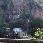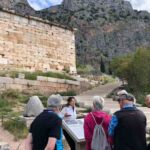 Der Morgen ist dem Orakel von Delphi gewidmet. Pünktlich um acht Uhr stehen wir am Eingang, um als Erste in aller Ruhe auf den Spuren jahrtausendealter Geschichte zu wandeln. Der frühe Termin brachte unseren Womos nebenbei die bestens Parkplätze am Eingang. Das Wetter zeigte sich endlich mal von der freundlichen Seite. Unser Guide verstand es, uns nicht nur das Orakel von der Bausubstanz zu erläutern. Auch seine Funktion währen der über 1.000 Jahre seiner Existenz in der griechischen Welt verstand sie anschaulich zu vermitteln.