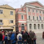 Nach einer ruhigen Nacht auf unserem Campingplatz brechen wir am Morgen auf, um Korfu zu erkunden. Die erste Station unserer Busrundfahrt ist Korfu Stadt. Die Altstadt und die Festung mit ihren wechselhaften Besetzern – Korinther, Römer, Venezianer, Franzosen, Engländer – fasziniert mit ihrem unverwechselbaren Flair.