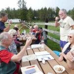 Dort wird das Wetter wieder deutlich besser und wir packen die Grills aus. So haben wir noch einen versöhnlichen Tagesabschluß. Zum heutigen Vatertag gibt es ein hochprozentiges Getränk von Reinhard. Die Frauen stehen heute in der zweiten Reihe, kriegen aber auch eine Runde! Interessierte Zuschauer haben wir auch.