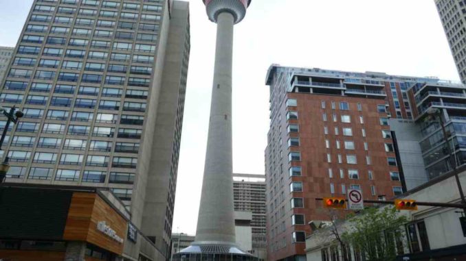 Fantastische Sicht über die Stadt vom Calgary-Tower.