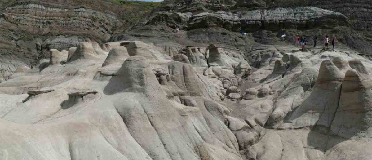 Wir kommen nun in ein Gebiet, in dem sehr viele Dinosaurier-Skelette gefunden wurden. Im Thyrell Museum erhält man eine gute Übersicht. Sein Schwerpunkt liegt auf zahlreichen Fossilienfunden aus den kanadischen Badlands. Es werden 40 vollständige Dinosaurierskelette ausgestellt.