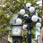 Wir kommen nun nach Gastown, einem Stadteil, der durch Gassy Jack zusammen mit anderen Holzfällern aufgebaut wurde. Gassy war unter anderem Riverboat Pilot, Abenteurer, Barkeeper, Holzfäller und stammte aus Hull in England. Unweit der Statue gibt es die Dampfuhr, die jede Viertelstunde und jede volle Stunde dampfbetrieben musiziert.