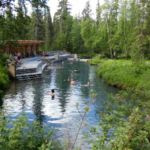 Wir verlassen unser Camp am Lake Muncho in Richtung Watson Lake. Auf dem Weg dorthin machen wir zu Fuß den kurzen Abstecher zu den Liard River Hotsprings. Im Alpha-Pool herrschen Temperaturen von bis zu 36°C. Einige nutzen das zu einem angenehmen Bad.