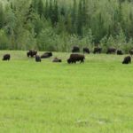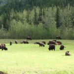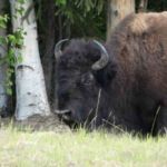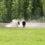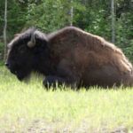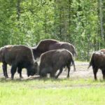 Fast auf der gesamten Strecke im Liard River Park begegnen und Bisonherden oder einzelne Bison-Paare mit mächtigen Tieren.