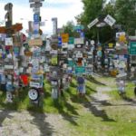 Beim Bau des Alaska Hkghways stellte ein amerikanischer Soldat wegen Heimweh in Watson Lake ein Straßenschild aus seiner Heimat auf. Andere folgten und Stand September 2018 wurden mittlerweile 88.186 Schilder aus aller Welt aufgestellt, darunter auch viele Schilder aus Deutschland und Österreich. Ein regelrechter Schilderwald!