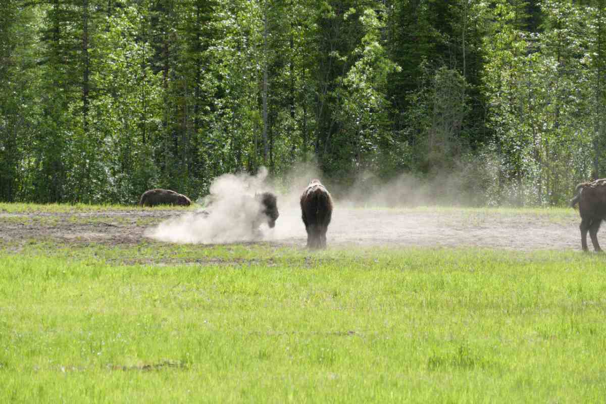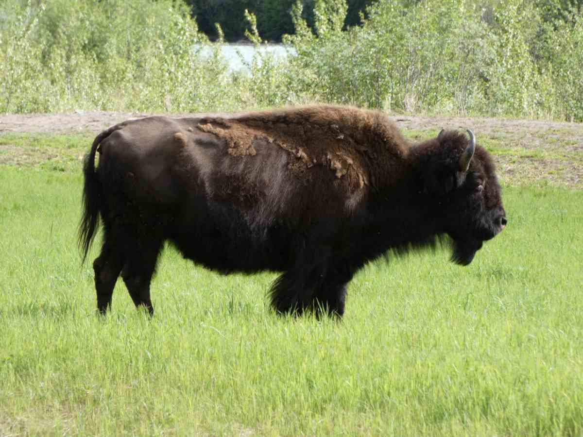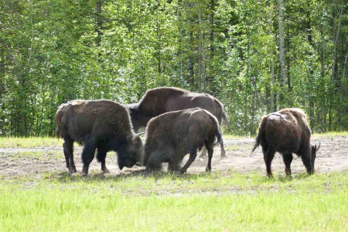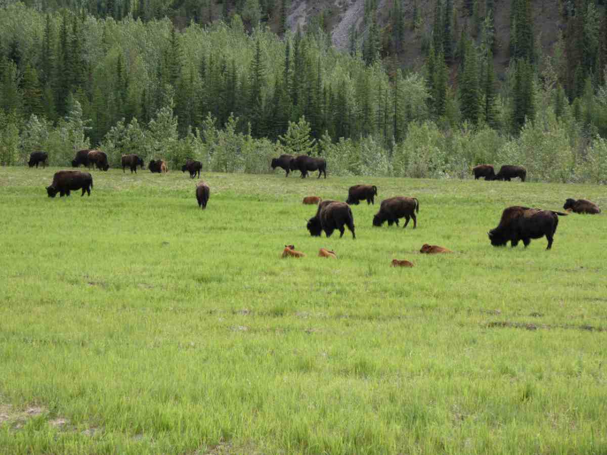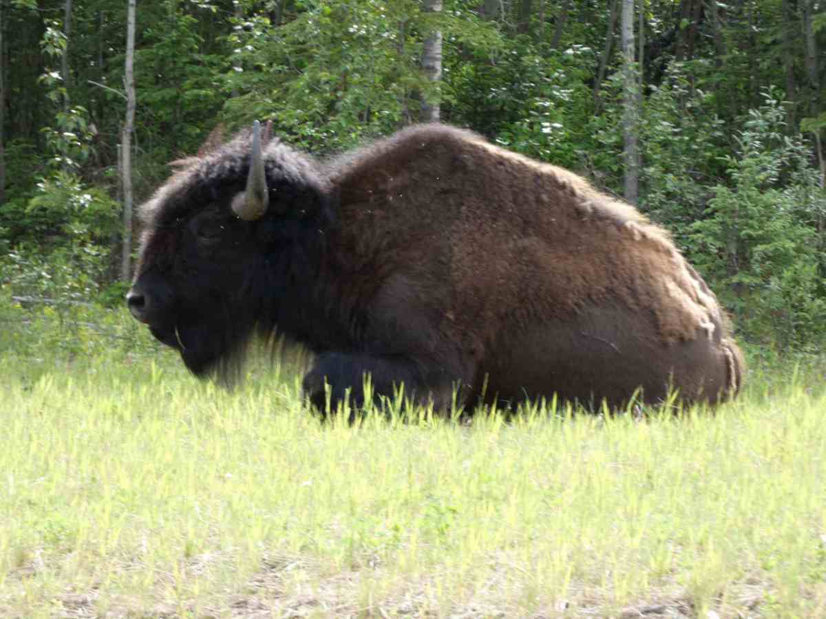 Fast auf der gesamten Strecke im Liard River Park begegnen und Bisonherden oder einzelne Bison-Paare mit mächtigen Tieren.