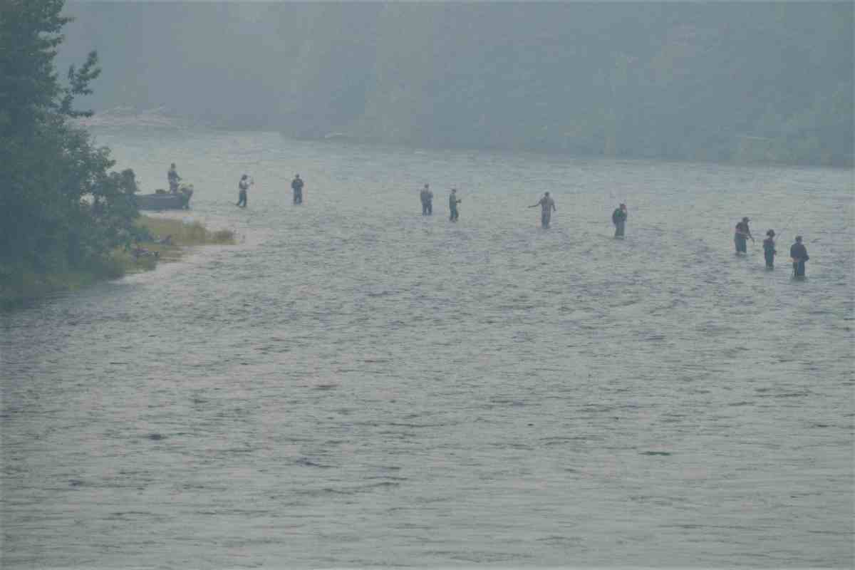 Im Kenai-River stehen die Lachsangler in stoischer Ruhe und ignorieren was im Umfeld passiert.