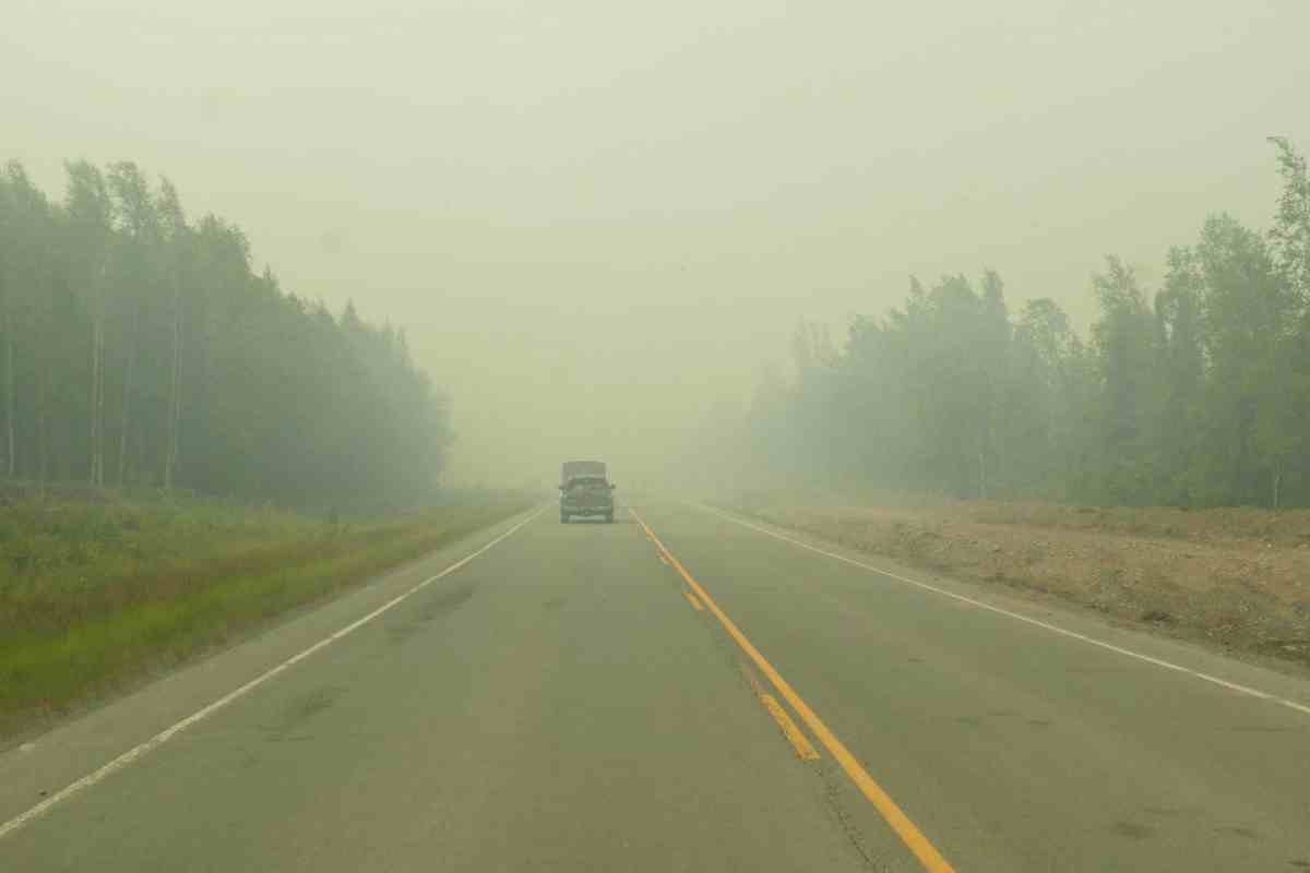 Der Wetterbericht hat uns einen sonnigen Tag versprochen. Beim morgendlichen Dunst gehen wir auch weiter davon aus. Daraus wird nichts, bald können wir es auch schon riechen. Der Dunst von Rauch ist überall und dunkelt die Sonne ab. Zwischen Anchorage und Kenai unserem Ziel gibt es einen riesigen Waldbrand. Der Wind treibt uns den Rauch entgegen. Das wird kein Tag für Postkartenfotos. Also nehmen wir Ziele über kurze Distanzen ins Fotovisier und freuen uns über die kleinen Dinge die uns angeboten werden.