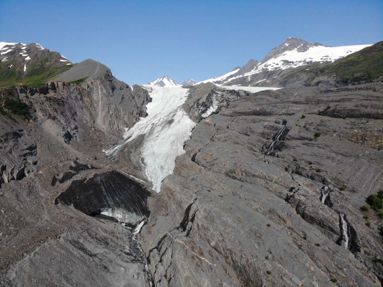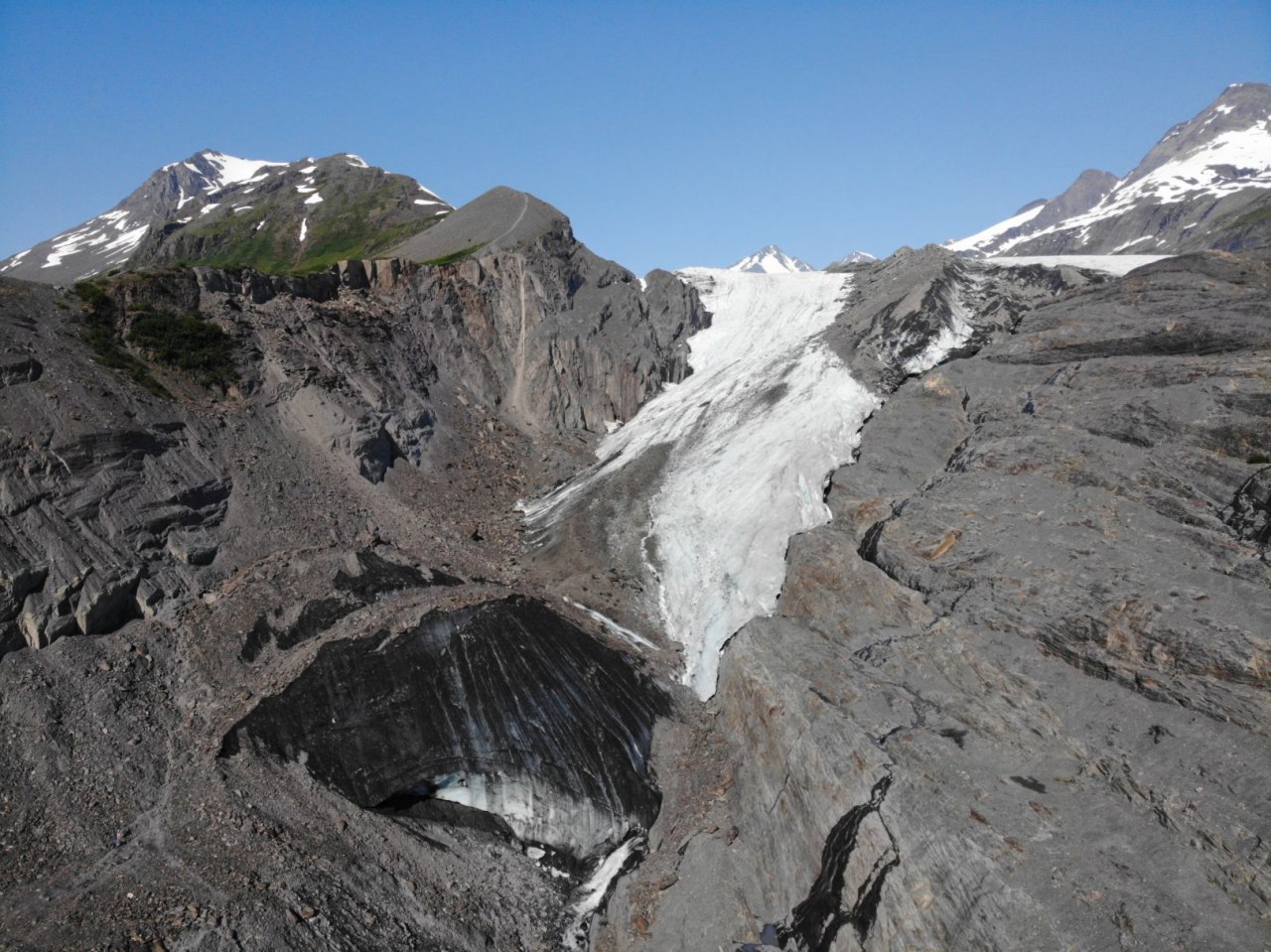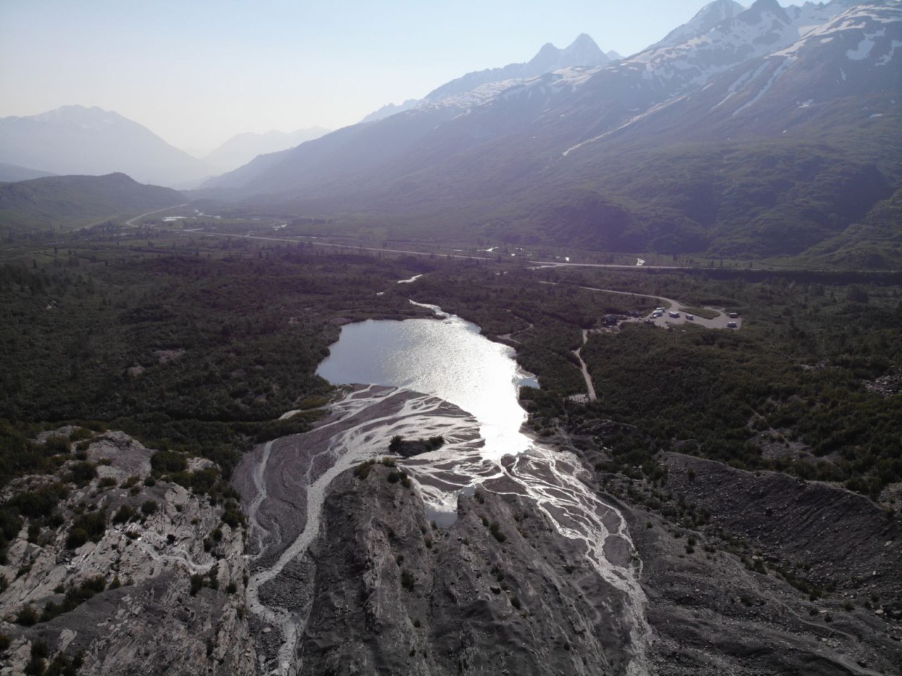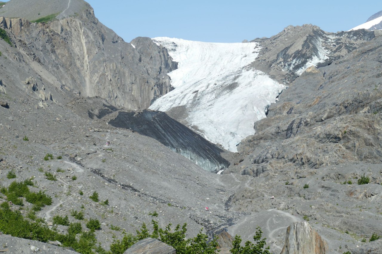 Und nur ein paar Kilometer weiter der Worthington Clacier, dem man leider auch die Erderwärmung mittlerweile ansieht.