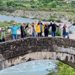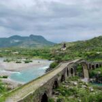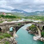 Wir machen heute einen Ausflug. Die Sonne lacht und hat uns fast den ganzen Tag begleitet. Unser Fahrer und Begleiter Seljim auf der Tour fährt uns zum ersten Fotostop: zur osmanischen Mes-Brücke. Sie wurde im 18. Jahrhundert über den Fluß Kir gebaut, um Shkoder mit dem Kosovo zu verbinden. Sie ist 108 Meter lang, zirka 18 Meter hoch und spannt sie sich mit 13 Bögen über den Fluss.