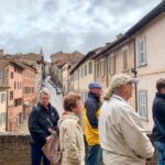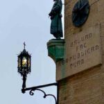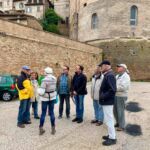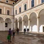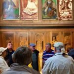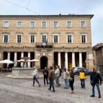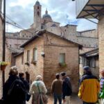 Kurz darauf klärt der Himmel auf und so erfahren wir, ohne Regen und teilweise sogar mit Sonnenschein, auf dem Rundgang an allen Stationen, Aktuelles und Geschichtliches. Sehr ausführlich besichtigen wir den Herzogspalast Palazzo Ducale.