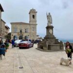 Nicht zu glauben, aber wahr – kaum angekommen werden wir durch starken Regen in unseren Womos festgehalten. Einige von der Gruppe haben sich dennoch mit dem Bus zur Fahrt in die Stadt auf dem Felsen getraut. Die älteste Republik Europas wurde im 9. Jahrhundert gegründet und ist nur 61 Quadratkilometer groß. Die mittelalterliche Hauptstadt liegt, umrahmt von Mauern und Kastellen, auf dem 749 Meter hohen Monte Titano. Wie ein Geschenk verziehen sich die Nebel, der Himmel klart auf und mit Sonnenschein haben wir weite Ausblicke ins Umfeld und sogar zum fernen Meer.