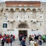 Nach den angekündigten 99% Regen sieht es nicht aus! Dann sind wir auch schon in Split – die zweitgrößte Stadt Kroatiens. Sie wurde rundum um die Ruinen des Palastes des römischen Kaisers Diokletian (reg. 284-303 n. Chr.) errichtet. Michael unser engagierter Guide erzählt uns viel Interessantes über die Stadt, Land und Leute. Das Wetter hält – die Sonne lacht immer noch.