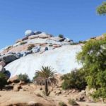 Weiter geht es zu den blauen Steinen. Ein belgischer Künstler hatte die Idee Felsen im steinigen Gebirge mit blauer Farbe zu bemalen. Dazu schleppte er 20.000 Kilogramm blauer Farbe in die Steinwüste.