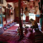 Im traditionellen Haus in einer Kashba lernen wir Details über die Lebensweise der Einwohner kennen. Das Gebäude ist zirka 400 Jahre alt und komplett aus Lehm gebaut. Ein Großteil der Kashba wurde nach einem schweren Unwetter verlassen, da die aus Lehm gebauten Häuser dem Starkregen nich widerstehen konnten. Natürlich probieren wir den berühmten Berber-Whiskey.