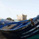 Im Fischereihafen von Essaouira, der geschützt außerhalb der Stadtmauer liegt, werden die blauen Schiffe noch heute ganz traditionell aus Holz gefertigt. Man kann die Fischer beobachten wie sie ihre Netze flicken.
