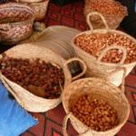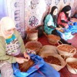 Wir starten den Tag mit einer Besichtigung einer Arganöl-Manufaktur. Hier sind im Wechsel 40 Frauen mit der Herstellung des kostbaren Arganöls beschäftigt. Das reine und ungemischte Arganöl gibt es nur in der Region zwischen Essaouira und Marakech. Zwei Sorten des Öls werden hergestellt, für den Verzehr und für die Kosmetik, alles in mühevoller Handarbeit. Zusätzlich gibt es Kosmetika für die Haut, Lippen und Haare. Unsere Gruppe unterstützt die Frauen gerne einmal bei der Arbeit.