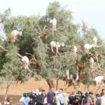 Das Land Richtung Marrakech ist sehr steinig und karg. Ziegen suchen sich saftige Blätter auf den Bäumen. Beim Gütertransport werden alle Ladekapazitäten genutzt. Für Fahrer und Beifahrer bleibt nicht viel Raum.
