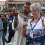 Am Abend stürzen wir in das bunte Treiben auf dem Gauklerplatz in Marrakech. Einkaufsmöglichkeiten an allen Ecken und natürlich die Gaukler. Besonders haben es unserer Truppe die Schlangenbeschwörer angetan. Zunächst mit etwas Angst oder Schreck im Gesicht, was sich dann schnell legt.