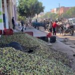 Wir schauen zu, wie sich Oliven aus einem großen Haufen erst zu Brei, dann schließlich zu Öl verarbeiten lassen. Natürlich probieren und kaufen wir das frisch gepresste Olivenöl.