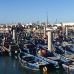 Wieder einmal holt uns ein Bus ab. Wir fahren nach Essaouira. Unser Rundgang beginnt im Hafen. Die Fischer sind dabei ihren Fang vom Morgen in Kisten zu sortieren und zu verkaufen. Sie reparieren ihre Netze und bereiten alles für den nächsten Tag vor. Als nächstes gehen wir in die Suks der kleinen Stadt. Es ist wieder einmal schön, die kleinen Geschäfte mit ihren „fremden“ Produkten zu sehen.