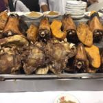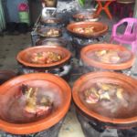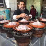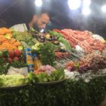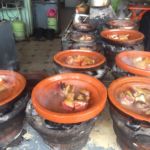 Wir essen an einem der vielen Stände eine Auswahl marokkanischer Leckereien.