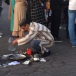 Zum Abend hin fahren wir mit dem Bus ins Zentrum und wollen den „Gaukler Platz“ besuchen. Es ist Sonntag, Feiertag und Beginn der Winterferien in Marokko. Somit ist es extrem voll, aber auch interessant, Schlangen auf dem Kopf zu haben und sonstige Kunststücke zu sehen.