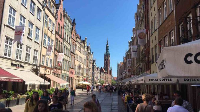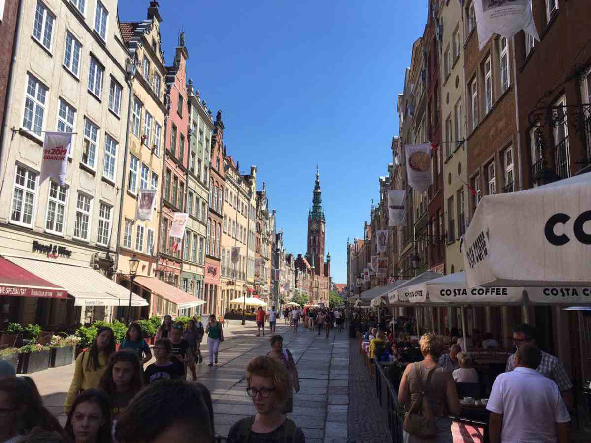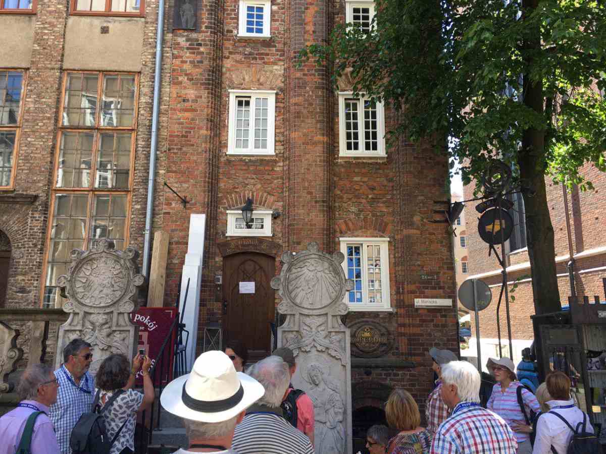 Weiter ging es in die Altstadt von Danzig, wo uns unsere Stadtführerin die bekanntesten Sehenswürdigkeiten der einst stark zerstörten und nun wieder sehr gut restaurierten Stadt an der Mottlau zeigte: den von schönen Patrizierhäusern umrahmten Langen Markt mit Rathaus und Neptunbrunnen, das Wahrzeichen Danzigs – das Krantor, die Marienkirche, die Biergasse und vieles mehr.