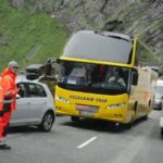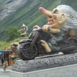 Auf gings zur spektakulären „Adlerstrasse“ auf die Hochebene, vorbei an einer bizarren Felsbildung des Gudbransjuvet. Wir durchqueren den Norddalsfjord per Fähre. Weiter ging es zum noch bekannteren Trollstigvejen , leider im Nebel verhangen, an den Romsdalsfjord . Hier werden Gemüse und super Erdbeeren angepflanzt. Weiter über den Langfjord Richtung Molde, vorbei an der größten und imposantesten Kalksteingrotte der Region, der Trollkirka. Danach bot die Atlantikstrasse mit Brücke und Tunells unter dem Meer, wunderschöne Ausblicke. Wir erreichten Kristiansund bei sehr mäßigen Temperaturen, sodass wir uns liebend gerne in die WoMos zurückzogen.