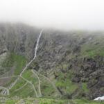Auf gings zur spektakulären „Adlerstrasse“ auf die Hochebene, vorbei an einer bizarren Felsbildung des Gudbransjuvet. Wir durchqueren den Norddalsfjord per Fähre. Weiter ging es zum noch bekannteren Trollstigvejen , leider im Nebel verhangen, an den Romsdalsfjord . Hier werden Gemüse und super Erdbeeren angepflanzt. Weiter über den Langfjord Richtung Molde, vorbei an der größten und imposantesten Kalksteingrotte der Region, der Trollkirka. Danach bot die Atlantikstrasse mit Brücke und Tunells unter dem Meer, wunderschöne Ausblicke. Wir erreichten Kristiansund bei sehr mäßigen Temperaturen, sodass wir uns liebend gerne in die WoMos zurückzogen.