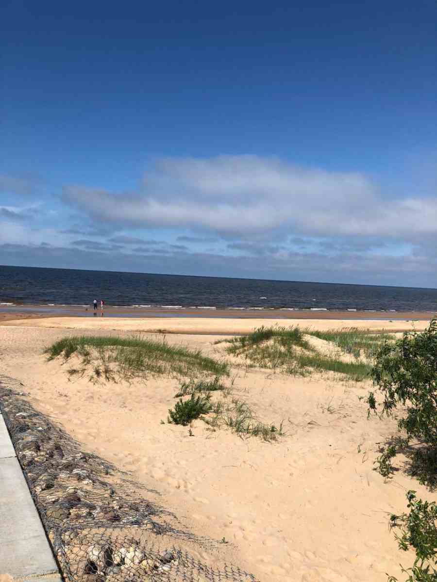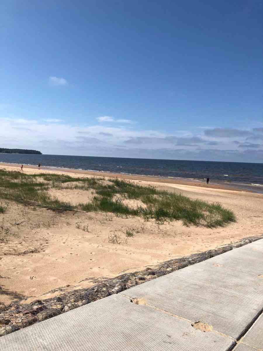 Da die Sonne uns heute morgen alle früh geweckt hatte, machten wir uns alle ziemlich zeitig wieder auf die Reise. Wir fuhren die Küstenstraße entlang an wunderschönen Naturlehrpfaden, machen zwischendurch immer einmal einen Stopp in den Ortschaften direkt am Meer wie zum Beispiel Salacgrīvas oder Svetciems und machten unsere Mittagspause bei frischem Fisch am Laucu Stein. Der vier Meter große Stein wurde von Eisschollen 1853 an Land gedrückt.